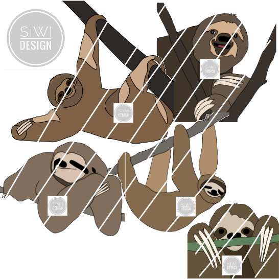 Enthalten sind alle fünf Varianten des niedlichen Faultiers.