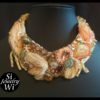 Hergestellt wurde dieses Exemplar mit Seide, Softtouch Cabochons, Muschelperlen und unzähligen Rocailles.